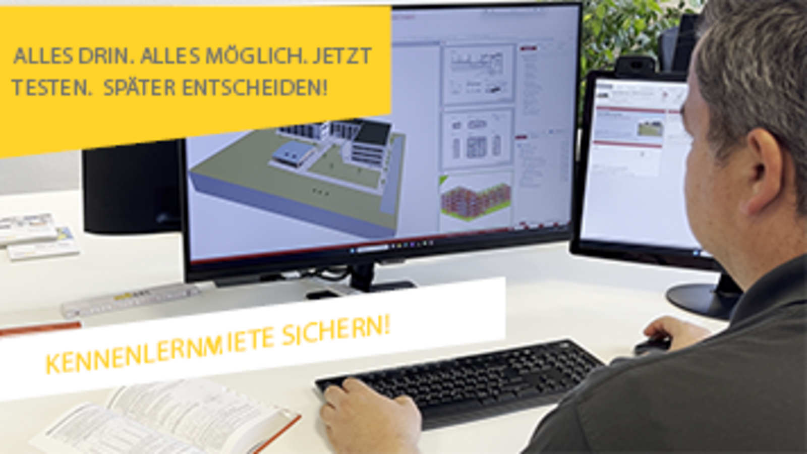 Ob Sie sich erst orientieren oder bereits konkrete Projekte umsetzen möchten – die Kennenlernmiete bietet Ihnen den idealen Einstieg. Sie prüfen die Software unter realen Bedingungen und verschaffen sich einen klaren Blick auf Ihre digitale Zukunft im Bauwesen.