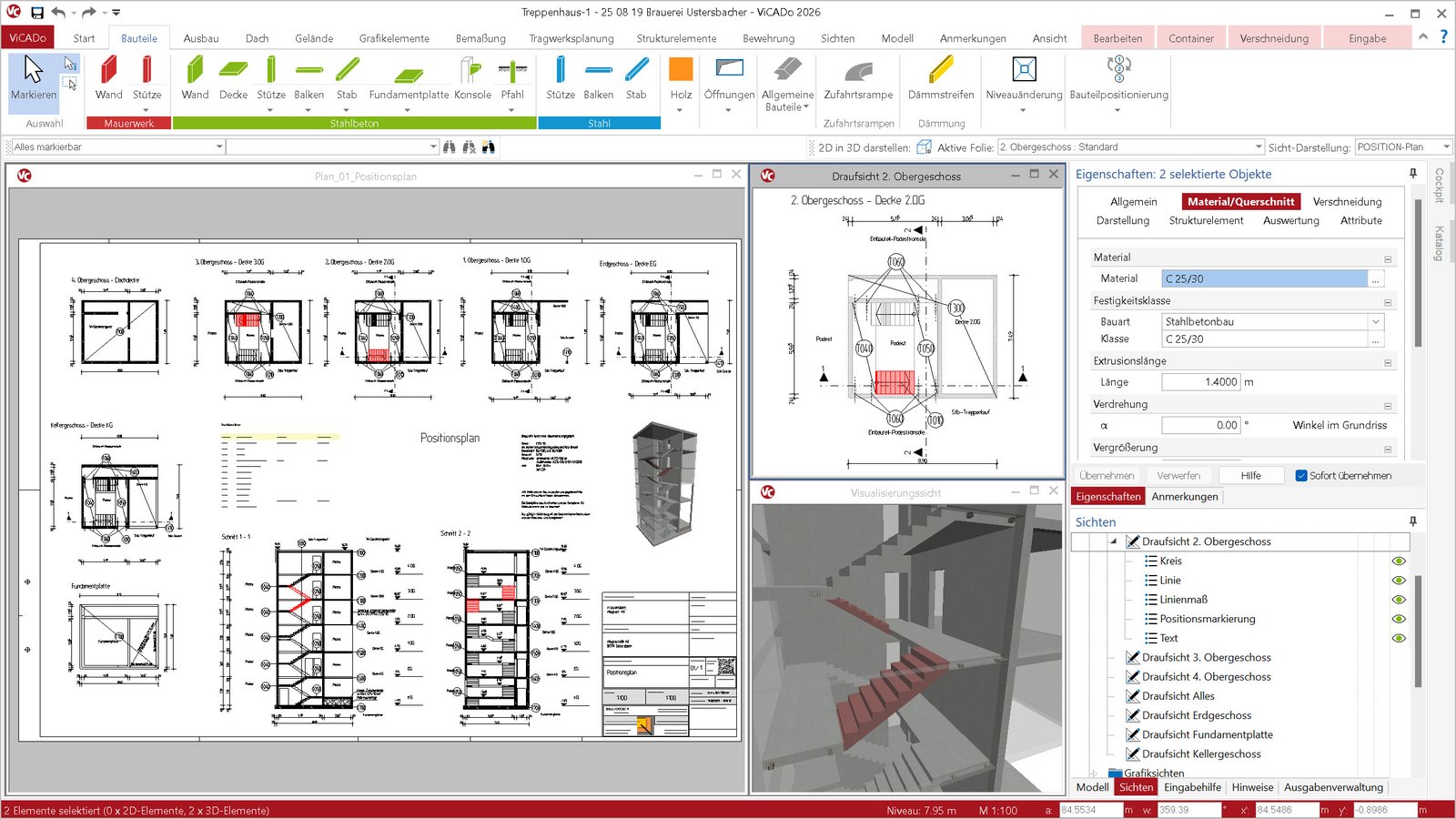 Neue Lizenzierung für kostengünstigen BIM-Einstieg: In der mb WorkSuite 2026 werden die Lizenzmodelle von ViCADo angepasst. Mit dem Produkt „ViCADo“ stehen die grundlegenden Funktionen für die Modellierung und Darstellung virtueller Gebäudemodelle zur Verfügung. Dies umfasst die Modellierung mit Standardbauteilen wie Wänden, Stützen, Balken und Decken bis hin zur Darstellung des Modells in Sichten und Plansichten.