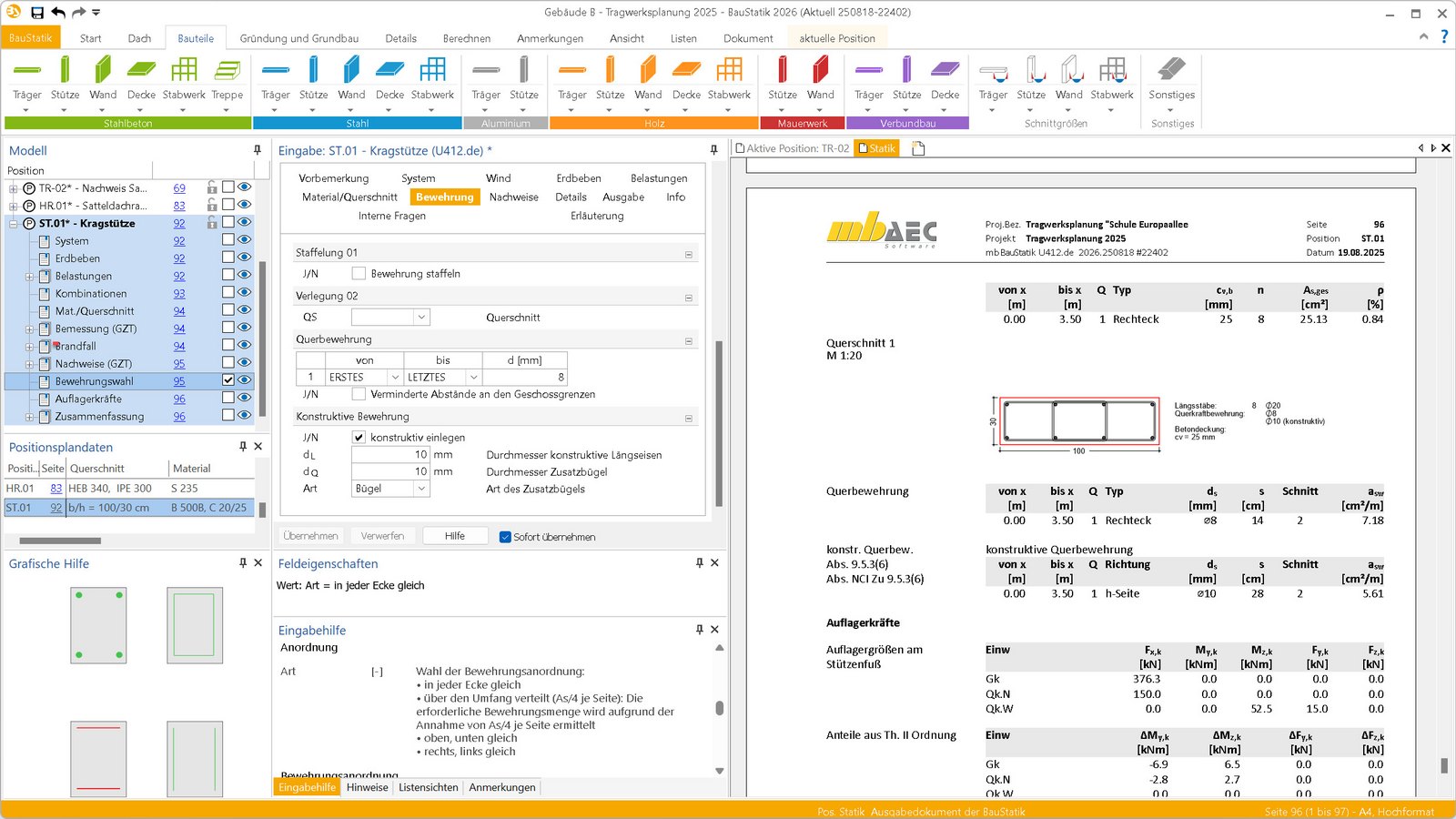 Mehr als statische Bewehrung planen: Für eine normgerechte Durchbildung reicht die statische Bewehrung allein nicht aus – zusätzliche ist konstruktive Bewehrung erforderlich. Lernen Sie die zentralen Vorgaben des Eurocode 2 kennen und entdecken, wie diese direkt in der mb WorkSuite umgesetzt werden.