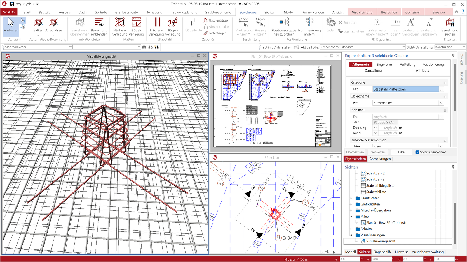 ViCADo.bewehrung – 3D-Bewehrungsplanung inkl. Übernahmen aus BauStatik und MicroFe